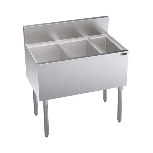 The unit is equipped with a 1/2-inch drain for quick and easy cleanup, and a 3/4" x 3-1/2” soda line cutout in the backsplash for seamless integration with your beverage dispensing system. Constructed with a durable stainless steel top, front, and sides, it offers both longevity and a sleek appearance. The stainless steel legs come with adjustable thermoplastic bullet feet for stability on uneven surfaces. This product is ETL-Sanitation and NSF certified, ensuring it meets high standards for safety and hygiene in food service applications.