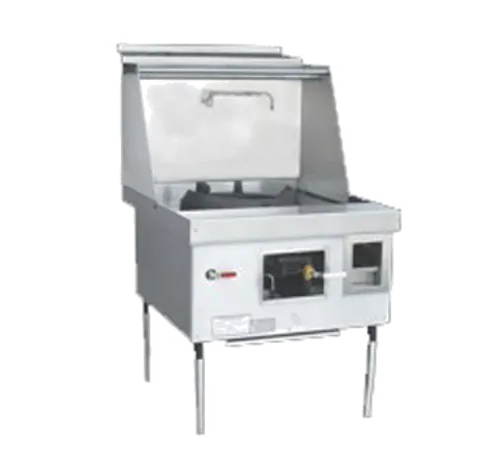 The Town E-1-SS EcoDeck Wok Range is a high-performance gas cooking solution designed for efficiency and convenience. Featuring a single chamber, this waterless wok range eliminates the need for a constant flow of cooling water, making it an eco-friendly choice. It includes a ball valve and push-button activated water wash bar for easy cleaning, along with a Chinese swing faucet for versatile water access. Each burner is equipped with an L-shaped gas valve handle for precise control.